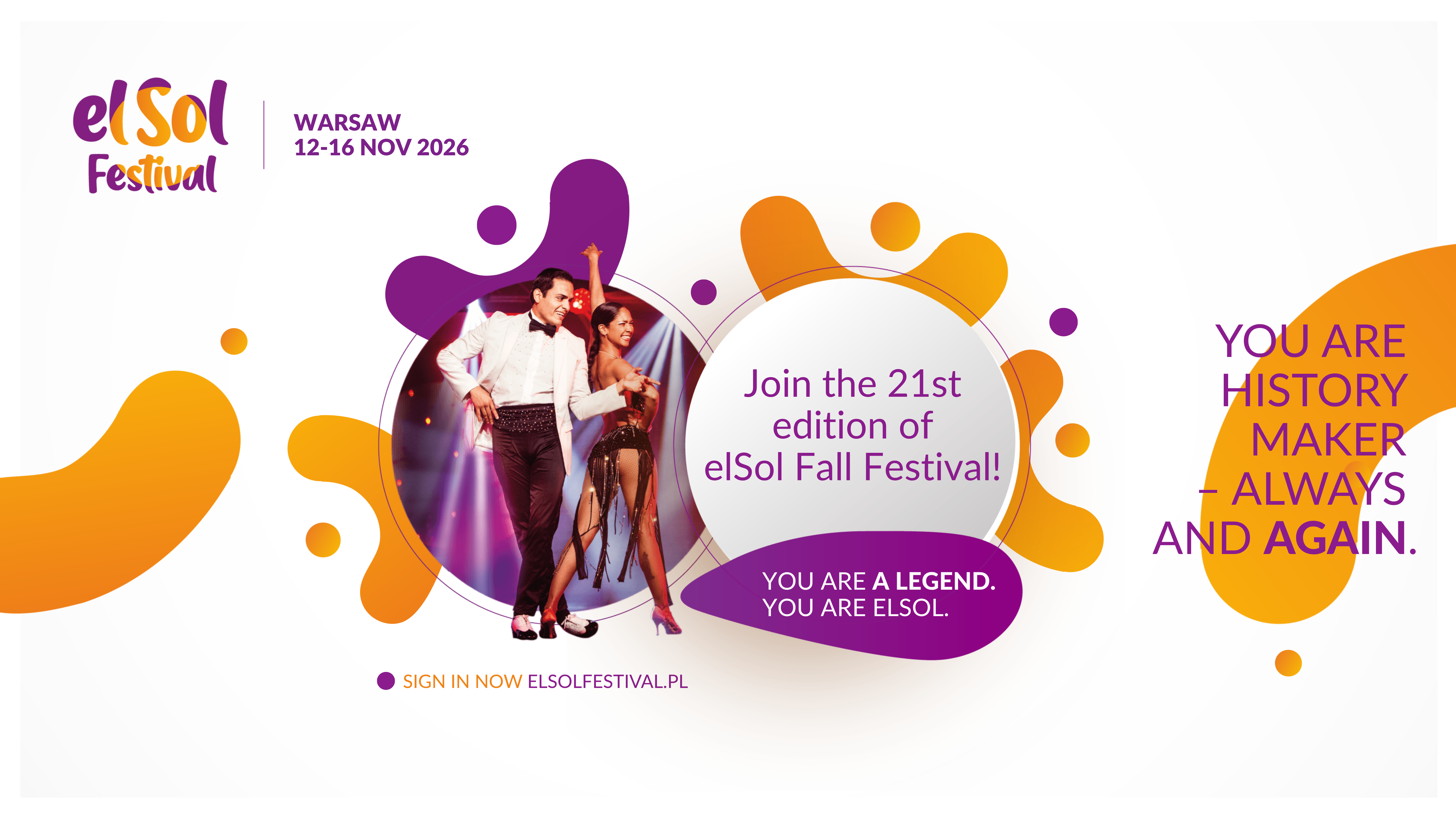 ELSOL FALL Program Nasz program obejmuje... ..over 100 hours of workshops, 2 competitions, 2 show nights, 4 dance nights, 1 before & 1 after party, day socials and night parties on 5 dance floors!More info about the program coming soon! DOWNLOAD ELSOL PROGRAM HERE USEFUL INFO (VENUES, FESTIVAL OFFICE, PARKING ETC.)